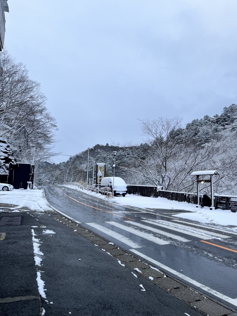 道路はシャーベット状ですのでお昼にはとけてしまうでしょう。